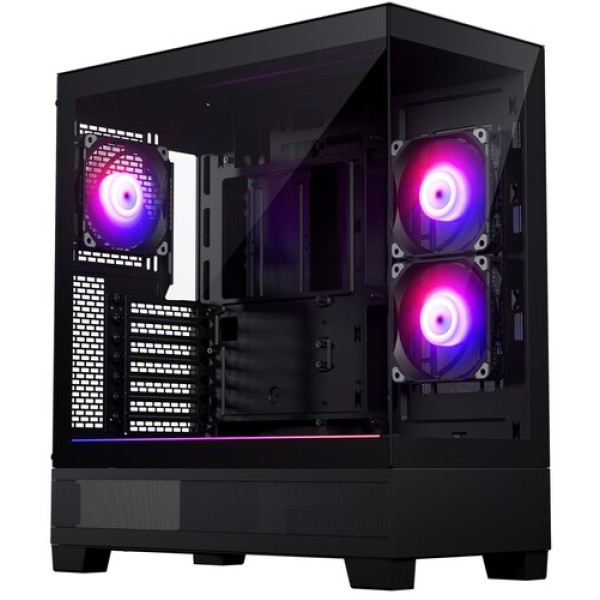 Боковая стенка и фронтальная панель корпуса PHANTEKS 523 XT View изготовлены из закалённого стекла. Предусмотрена многоцветная адресуемая подсветка предустановленных вентиляторов.